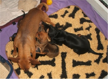 Tag 8 - Die Verdoppelung des Geburtsgewichtes in der ersten Woche haben alle geschafft. Auch in diesem Wurf gelingt die farbliche Sortierung blind...