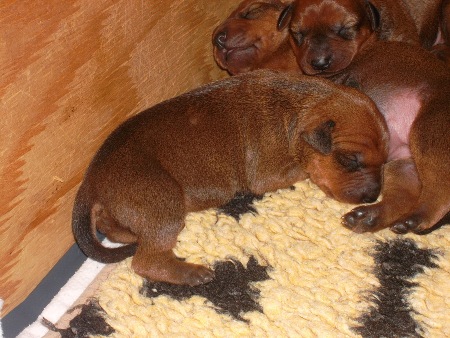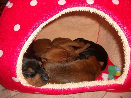 Heute nacht wurden unsere Pinscherbabies geboren. Der letzte musste leider per Kaiserschnitt auf die Welt kommen. Jetzt erholen wir uns erst mal alle von den Strapazen der Nacht.