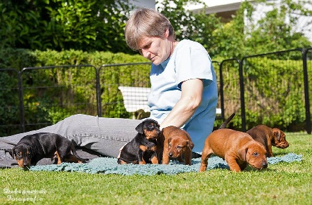 1 Rüde sr "Jaromir" (Ernstfried - Miro - wohnt jetzt bei Troisdorf) 1 Rüde rot "Jantar" (Bernstein, darf bleiben)